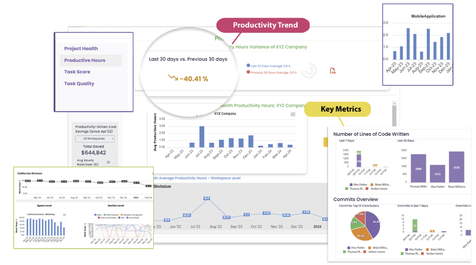 Stop drowning in disconnected reports. With unified productivity intelligence, you see the full picture - how projects are performing, where time is spent, which tasks deliver value, and how quality impacts outcomes. From code commits to budget burn, every metric is tracked, analyzed, and transformed into insights that fuel growth, sharpen execution, and give you the unfair advantage of foresight.